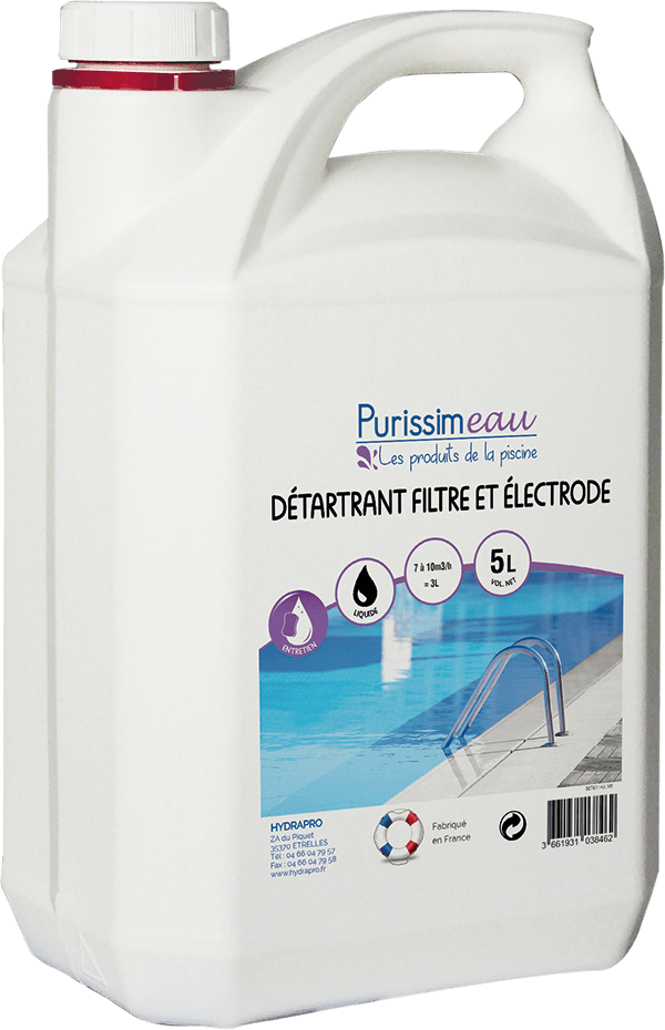 Le Détartrant filtre et électrode est un produit d’entretien permettant d’éliminer les incrustations de calcaire, les dépôts et les sédimentations du filtre à sable et des électrodes. Ce produit redonne au filtre toutes ses capacités de débit.